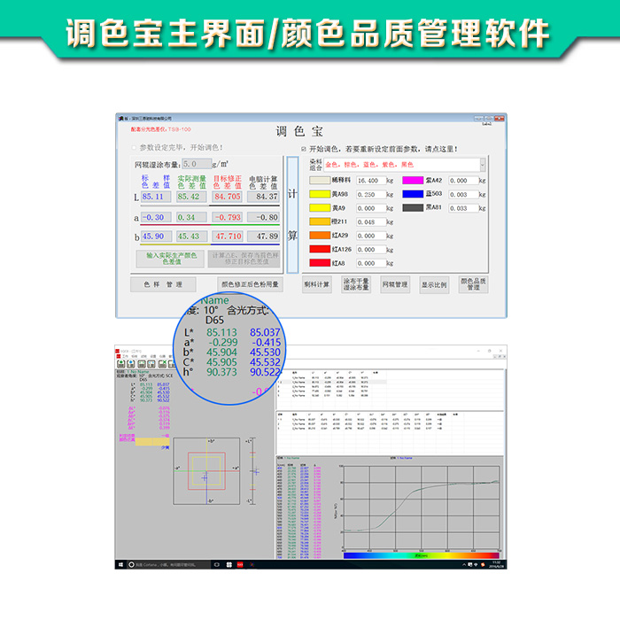 操作界面简单,功能齐全。该软件直接应用于生产中的颜色调整、打样、旧料利用等。不需要在实验室、打样。